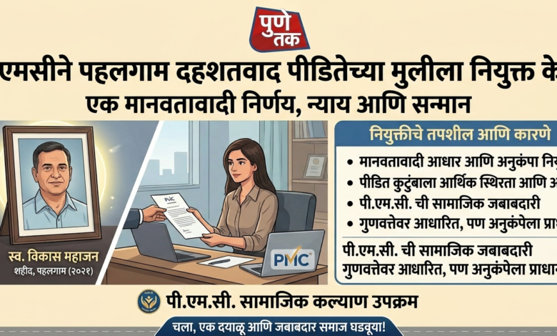 पहलगाम दहशतवादी हल्ल्यानंतर ११ महिन्यांनी, आर्थिक अडचणींबाबत तक्रार केल्यानंतर पुणे महानगरपालिकेने पीडितेच्या मुलीला वर्ग-२ अधिकारी म्हणून नियुक्त केले.